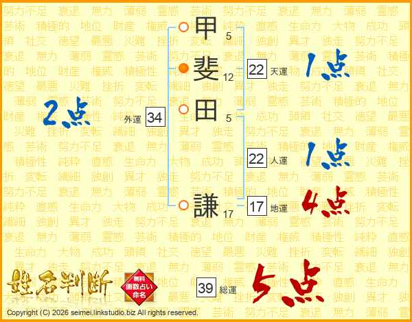 甲斐田謙さんの総運は39画の5点!