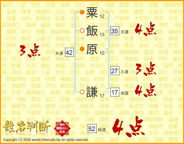 粟(12画)飯(13画)原(10画) 謙(17画)
