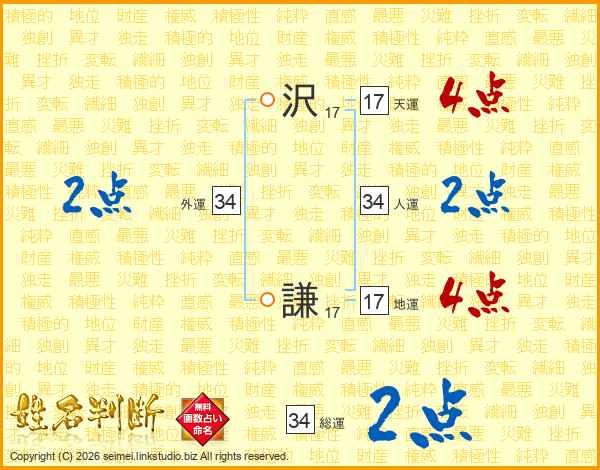 沢謙さんの総運は34画の2点!