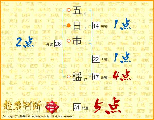 五日市謡さんの総運は31画の5点!