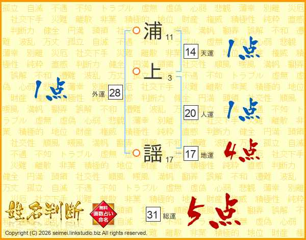 浦上謡さんの天運は14画の1点!