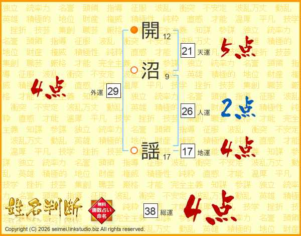 開沼謡さんの総運は38画の4点!