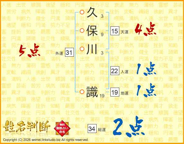 久保川識さんの人運は22画の1点!
