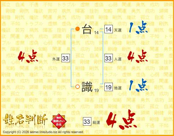 台識さんの総運は33画の4点!