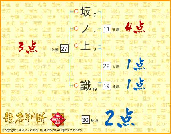 坂ノ上識さんの天運は11画の4点!