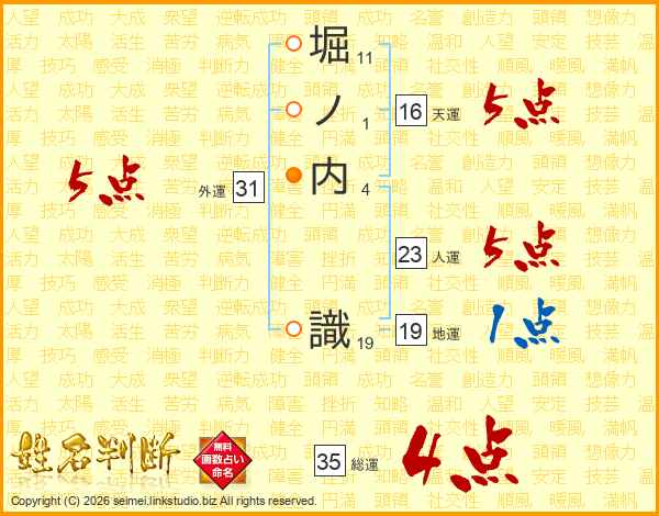 堀ノ内識さんの総運は35画の4点!