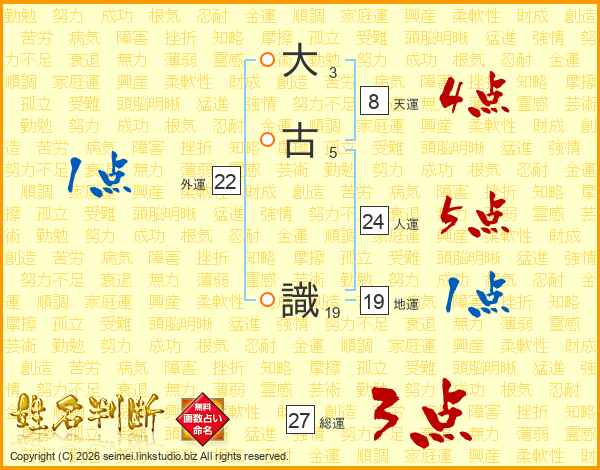 大古識さんの総運は27画の3点!