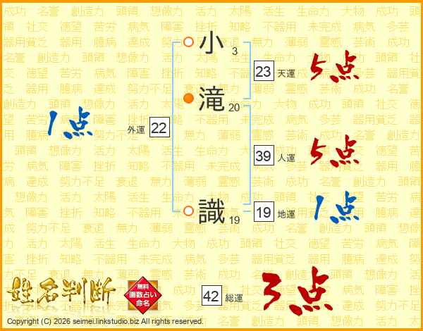 小滝識さんの天運は23画の5点!