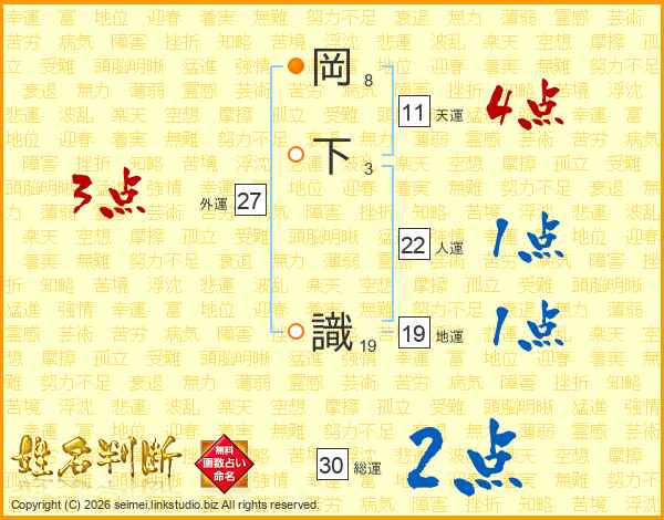 岡下識さんの人運は22画の1点!