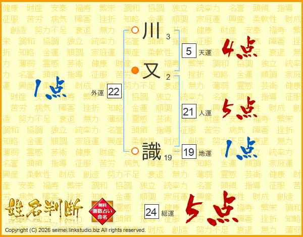 川又識さんの総運は24画の5点!