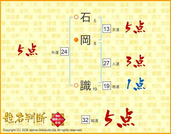 石岡識さんの総運は32画の5点!