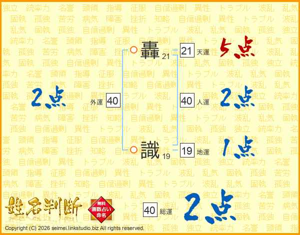 轟識さんの人運は40画の2点!