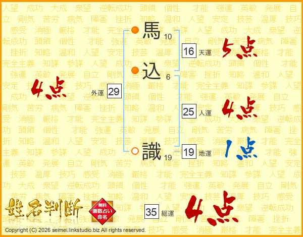馬込識さんの人運は25画の4点!