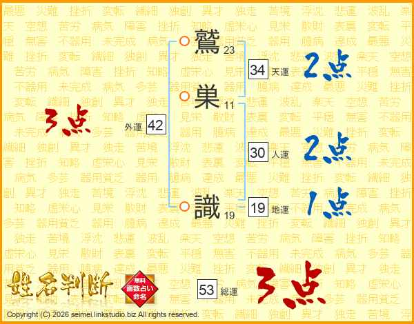 鷲巣識さんの総運は53画の3点!