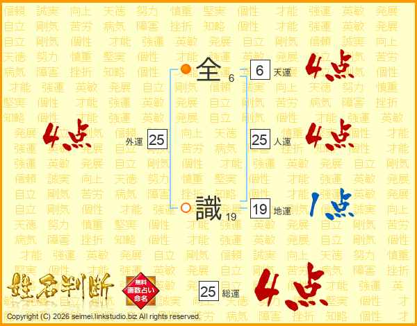 全識さんの総運は25画の4点!