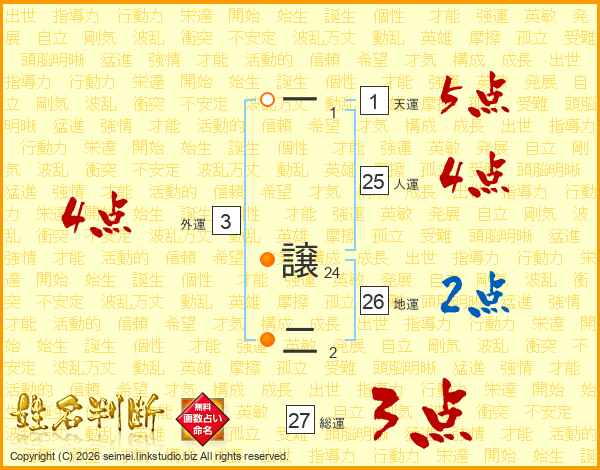 一譲二さんの地運は26画の2点!
