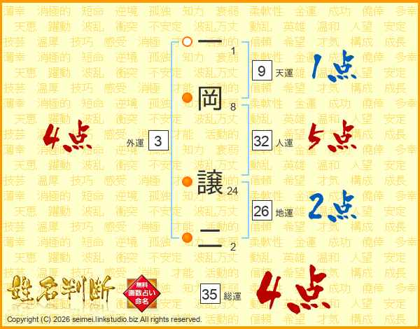 一岡譲二さんの総運は35画の4点!