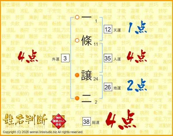 一條譲二さんの総運は38画の4点!