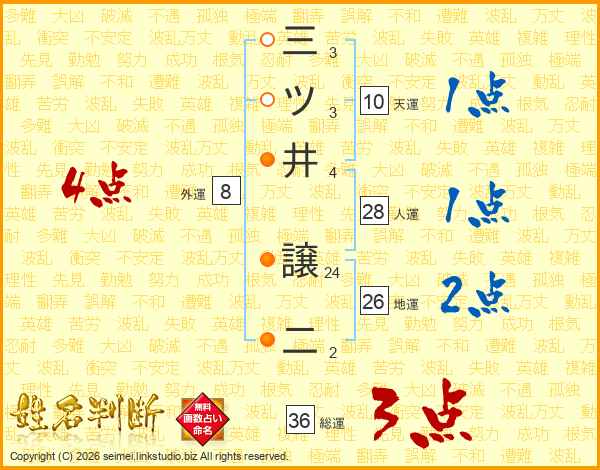 三(3画)ツ(3画)井(4画) 譲(24画)二(2画)