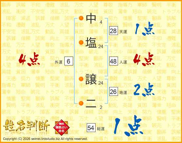 中塩譲二さんの総運は54画の1点!