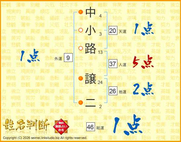 中小路譲二さんの地運は26画の2点!