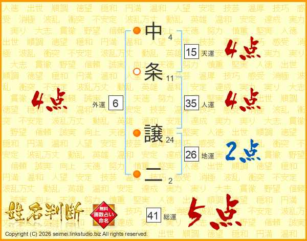 中条譲二さんの総運は41画の5点!