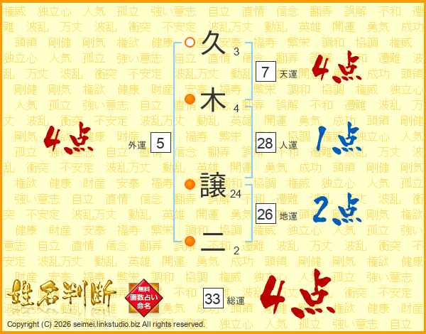 久木譲二さんの総運は33画の4点!
