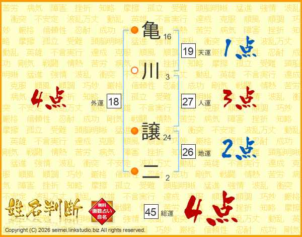 亀川譲二さんの総運は45画の4点!