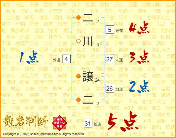 二川譲二さんの総運は31画の5点!