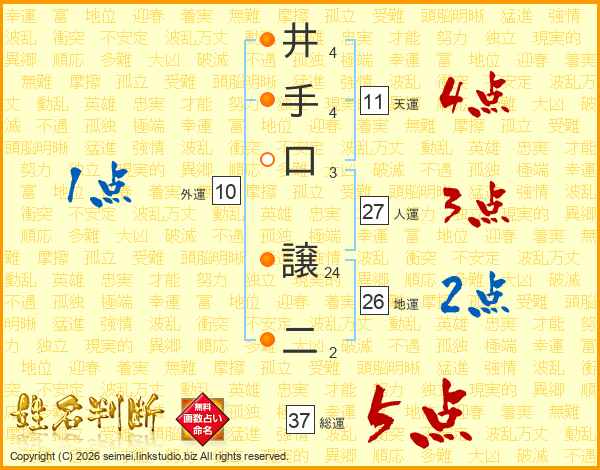 井(4画)手(4画)口(3画) 譲(24画)二(2画)