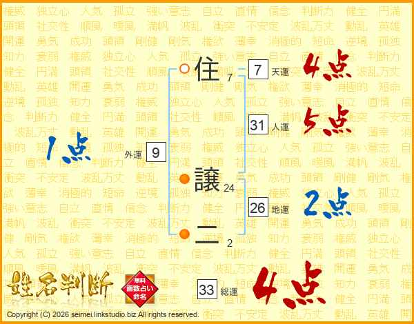 住譲二さんの地運は26画の2点!