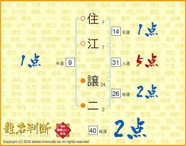 住江譲二さんの総運は40画の2点!