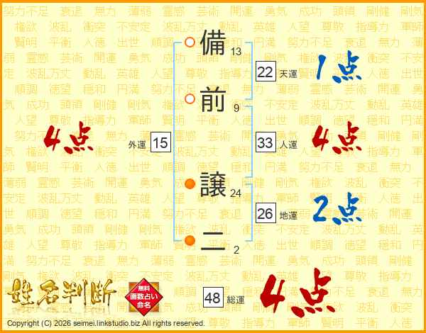 備前譲二さんの地運は26画の2点!