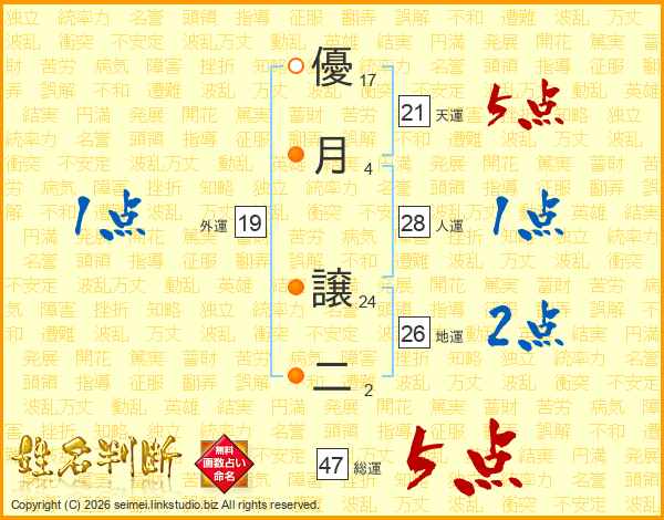 優月譲二さんの総運は47画の5点!