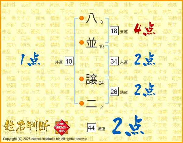 八並譲二さんの総運は44画の2点!