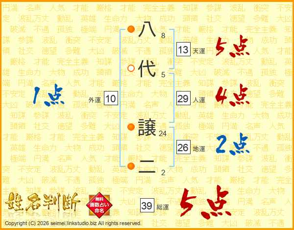 八代譲二さんの総運は39画の5点!