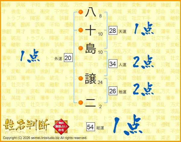 八十島譲二さんの総運は54画の1点!