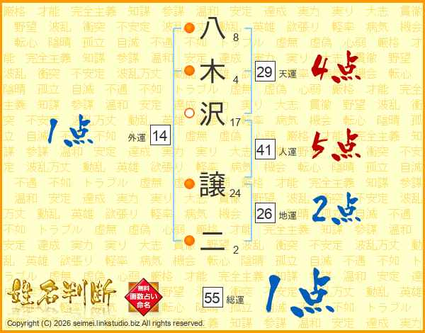 八木沢譲二さんの人運は41画の5点!