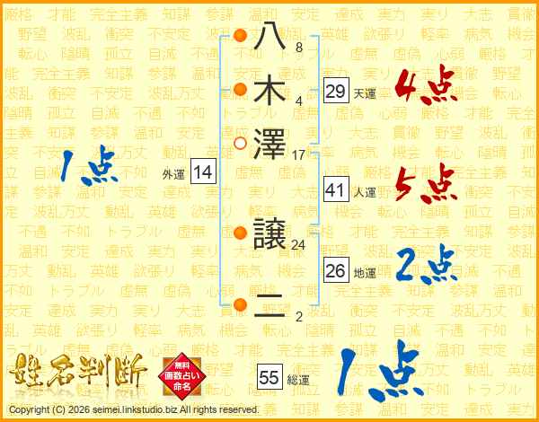 八木澤譲二さんの人運は41画の5点!