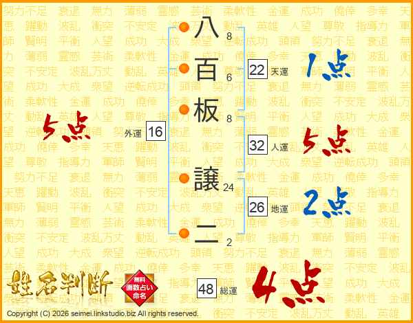 八(8画)百(6画)板(8画) 譲(24画)二(2画)