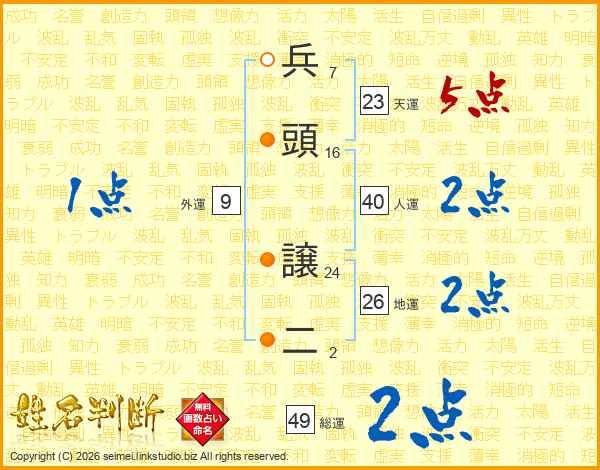 兵(7画)頭(16画) 譲(24画)二(2画)
