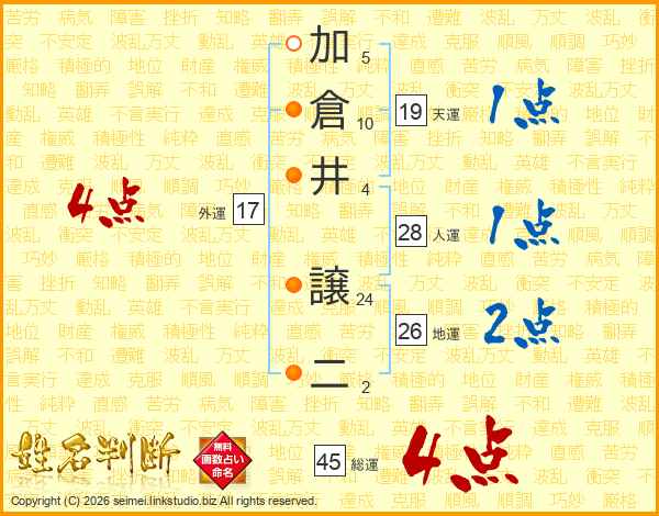 加(5画)倉(10画)井(4画) 譲(24画)二(2画)