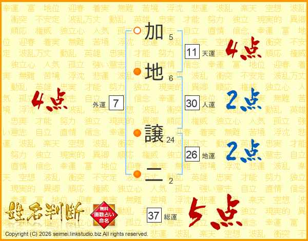 加地譲二さんの総運は37画の5点!