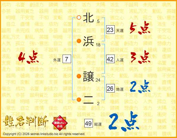 北浜譲二さんの天運は23画の5点!