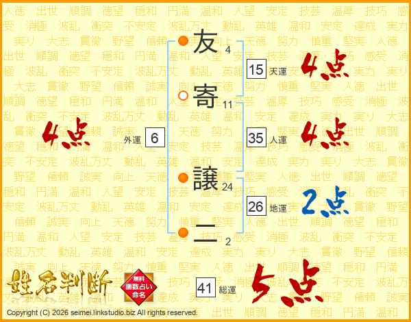 友寄譲二さんの総運は41画の5点!