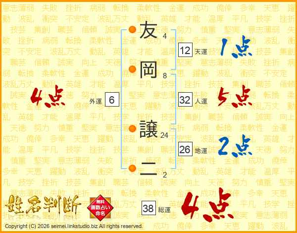 友岡譲二さんの総運は38画の4点!