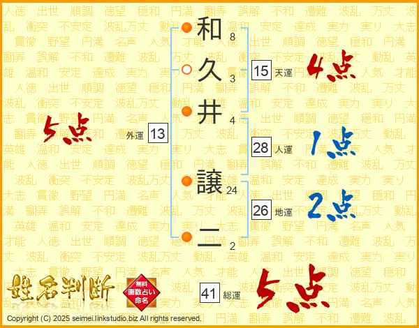 和久井譲二さんの総運は41画の5点!