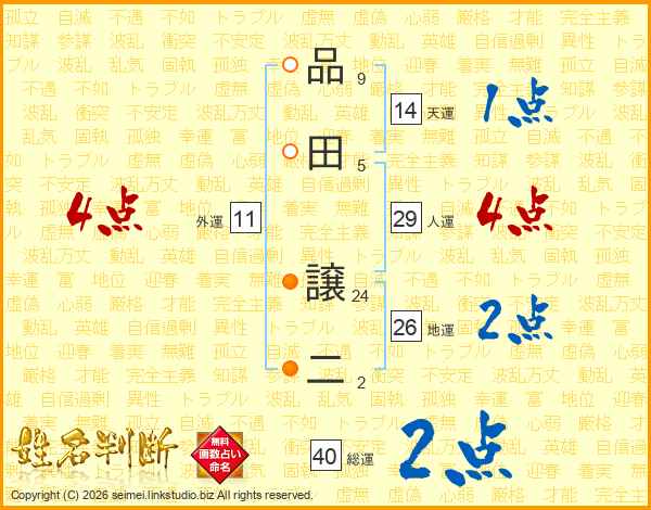 品田譲二さんの総運は40画の2点!