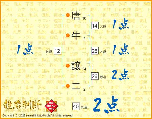 唐牛譲二さんの地運は26画の2点!
