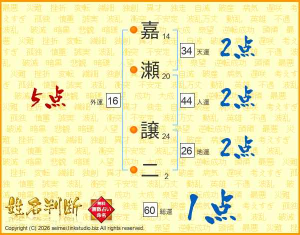 嘉(14画)瀬(20画) 譲(24画)二(2画)